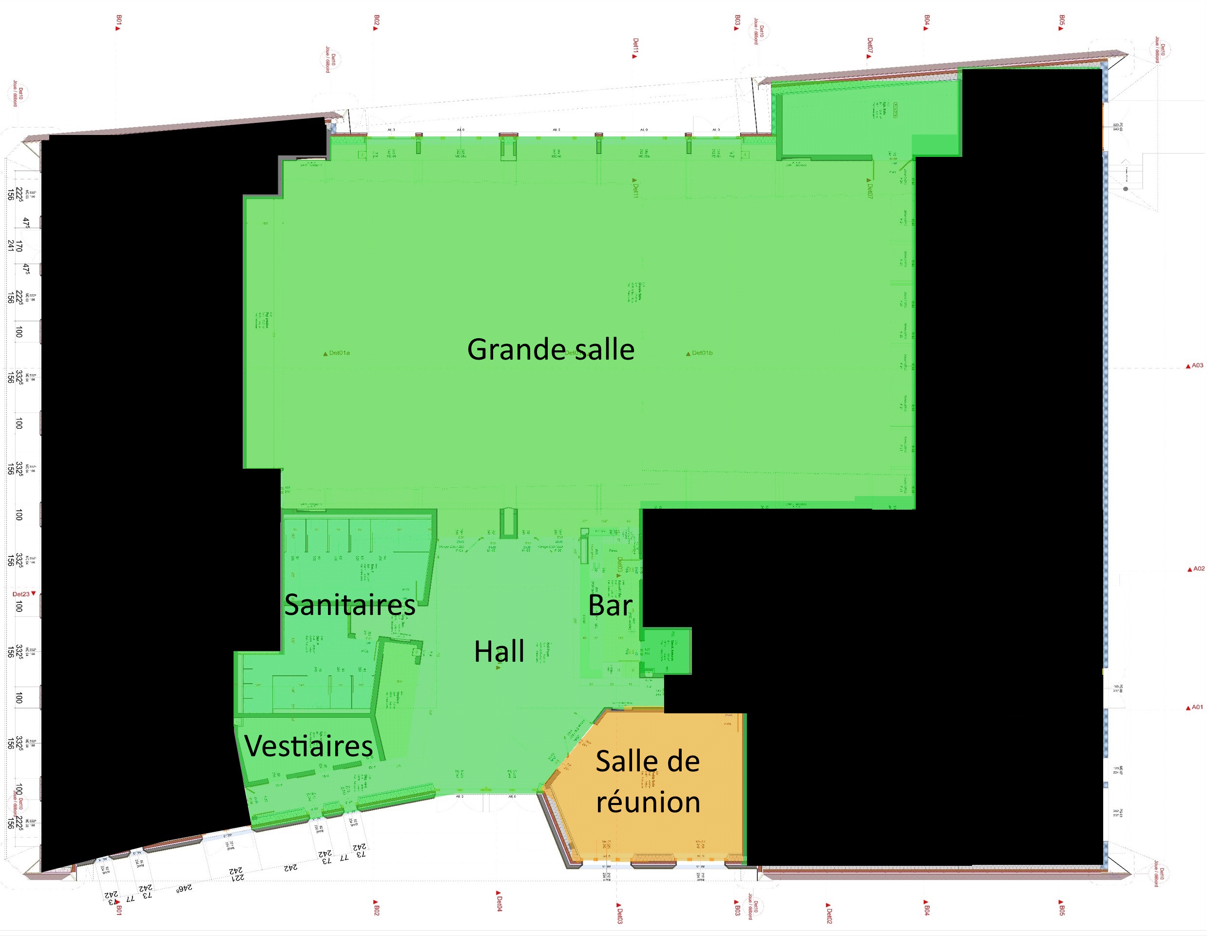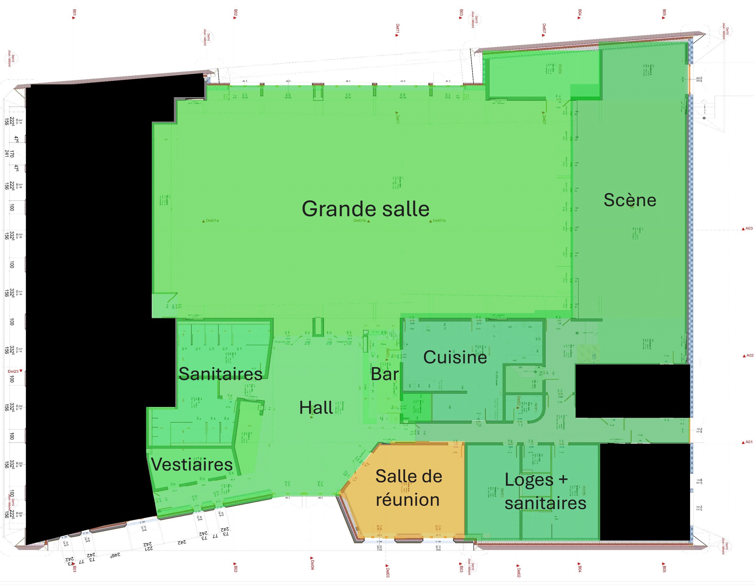 – Les loges et vestiaires H/F, pour le confort des artistes et intervenants