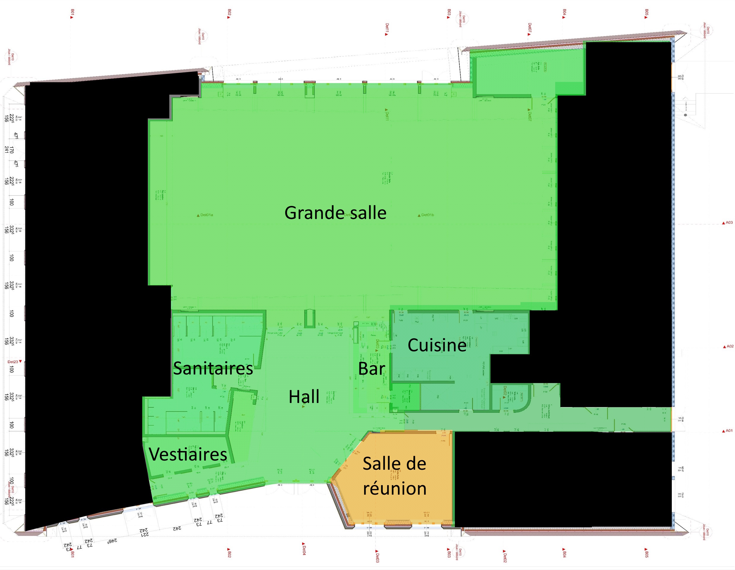 – Les espaces de rangement et sanitaires dédiés au personnel traiteur